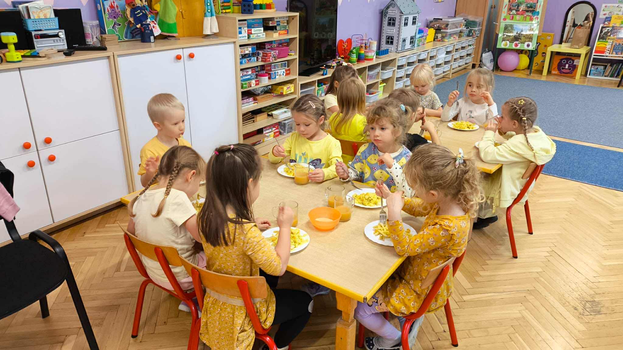 Kolejny kolorowy czwartek za nami - dzisiaj królował w naszym przedszkolu kolor żółty. Jedzonk miało kolor żółty i zabawy były w kolorze żółtym.