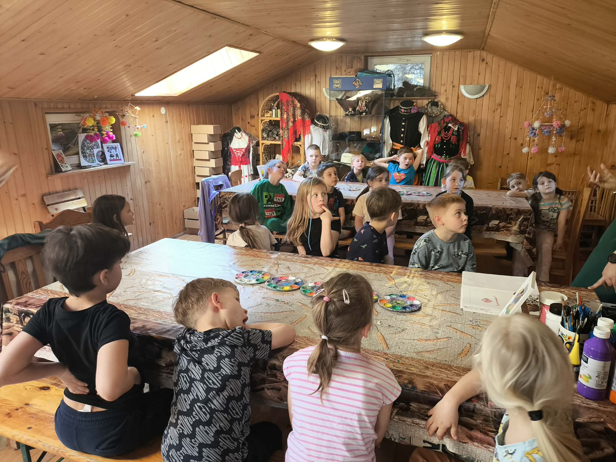 W czwartek, tuż przed Świętami Wielkanocnymi, dzieci z gr. III i IV odwiedziły Zagrodę Edukacyjną "U LUSI" w Konarzewie. Przedszkolaki poznawały regionalne tradycje związane z Wielkanocą, uczestniczyły w warsztatach malowania na szkle oraz wykonywały zajączki wielkanocne z ciasta. Miały możliwość pospacerowania na wiejskim podwórku, kontaktu ze zwierzętami, oglądały różne jajka, zobaczyły jak powstaje wydmuszka. Miały możliwość spróbowania tradycyjnych potraw: chlebek z masełkiem własnej produkcji, miodem, powidłami z próżonych jabłek. Na zakończenie każdy posilił się talerzem zupki pomidorowej. Był to bardzo miło spędzony czas.